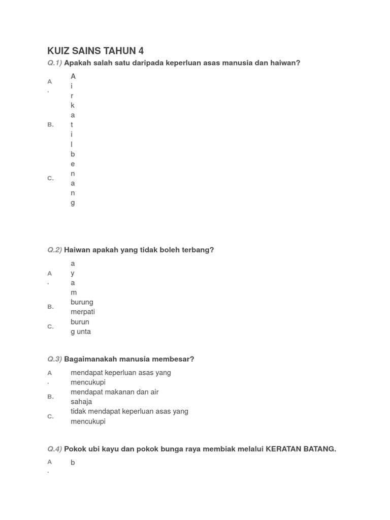 Selamat datang kuiz uji minda. Soalan sains tahun 3 tajuk haiwan. Menulismenconteng.my gambar himpunan pentaksiran akhir tahun. Kuiz sains tahun 6 bab 3. Kuiz sains dan matematik tahun 1 hingga tahun 2draft. We provide kuiz sains pt3 apk 2.0.8 file for 3.1 and up or blackberry (bb10 os) or kindle fire and many android phones such as sumsung galaxy, lg, huawei and moto. Jawab semua soalan yang terdapat dalam kuiz ini. Read kuiz sains pt3 apk detail and permission below and click download apk button to go to download page. Kali ini kita akan belajar mengenai tumbuhan untuk sains tahun 3. Berikut ialah kuiz tahun 3. Ia berkonsepkan latih tubi yang menarik. Kuiz ulangkaji sains tahun 6. Mari kita belajar apa itu pembiakan tumbuhan dan ketahui berapa cara pembiakan untuk tumbuhan :) jangan lupa tonton hingga habis untuk mendapatkan soalan kuiz !